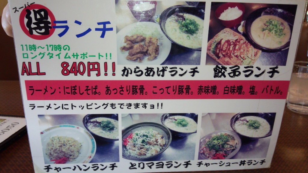 餃子ランチのラーメンはこってり豚骨を注文!