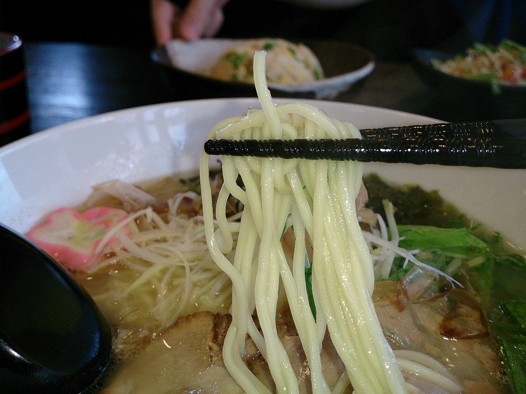 中細ストレート、かんすいなしの自家製麺。