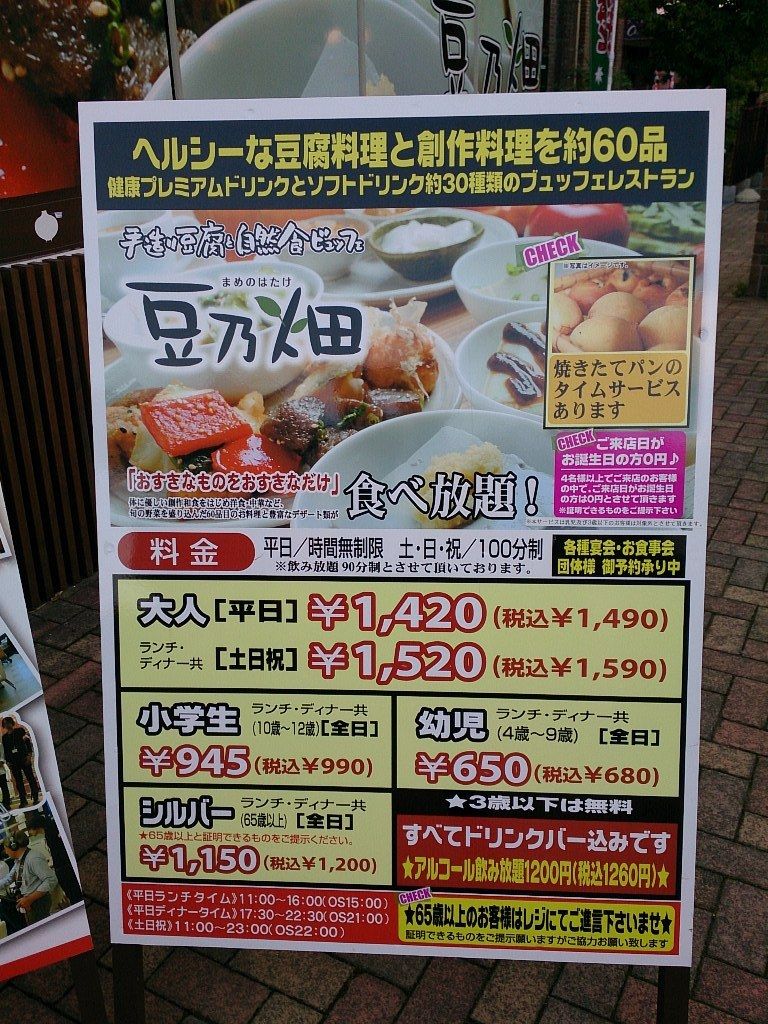 2013年10月28日 「豆乃畑」 和食バイキング 四日市市☆ 「豆乃畑」 でランチ!豆腐料理中心でヘルシーなバイキングです(^o^)http://www.mamenohatake.net/住所:三重県四日市市富州原町2番40号イオンモール四日市北 赤レンガ棟TEL:059-365-5533